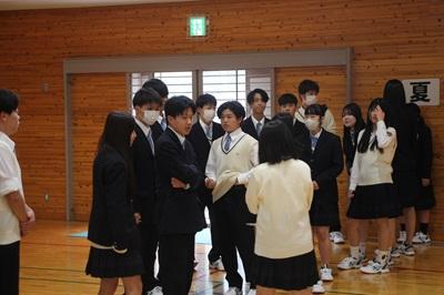 4/14(火)の5・6限、本校SCの矢萩先生をお迎えして、新入生エンカウンターを行いました。様々な活動を通して、クラスメイトだけでなく別のクラスの生徒とも交流しました。普段何気なく使う「挨拶(あいさつ)」という言葉。訓読みではそれぞれ「挨く(ひらく)」「拶る(せまる)」と読みます。それぞれの活動の中では必ずあいさつをして、お互いにこころをひらき、相手のこころに少しずつ歩み寄りながら楽しく交流する様子が見られました。
