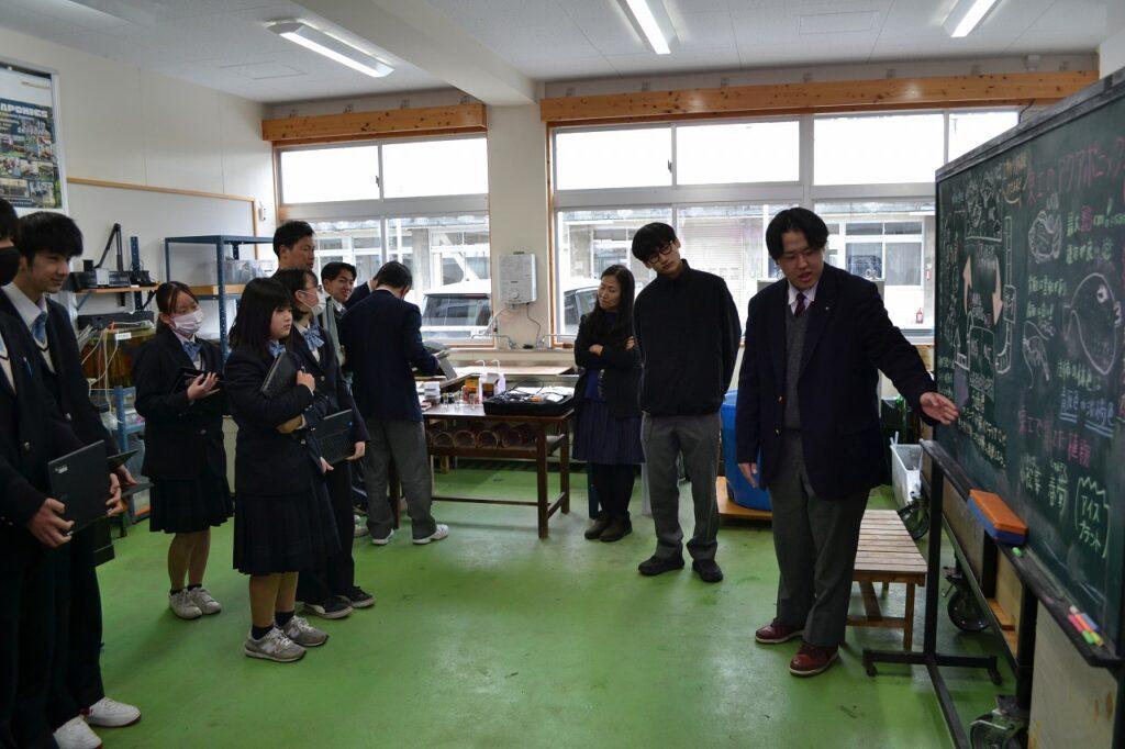 東岡山工業高校では、担当の先生や生徒の皆さんから取り組みの説明を受け、実際のアクアポニックスの設備や運用の様子を見学しました。同じ県立高校の実践に触れ、生徒たちは具体的なイメージを持つことができました。