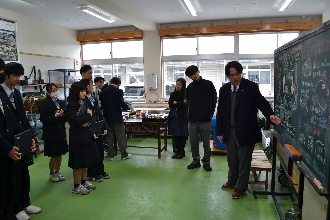 3月18日(水)、食農生産科2年生の生産加工類型の生徒が、東岡山工業高校と岡山理科大学を訪問し、見学研修を行いました。今回の研修では、本校でも今年度から取り組みを始めた陸上養殖に関連し、アクアポニックスや好適環境水について先進的に実践している教育機関で学びました。