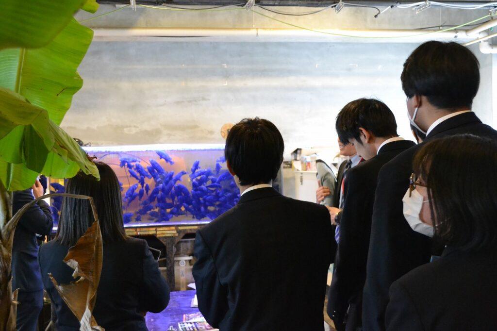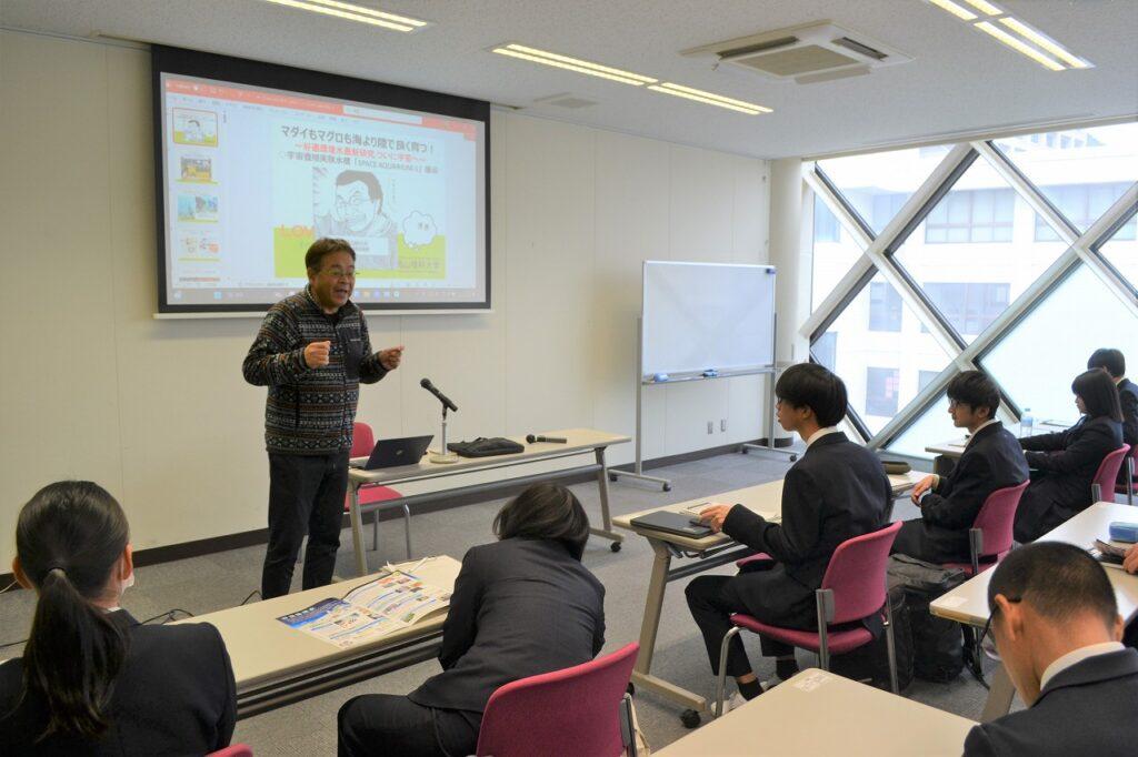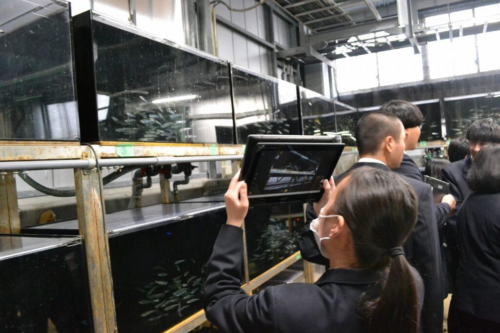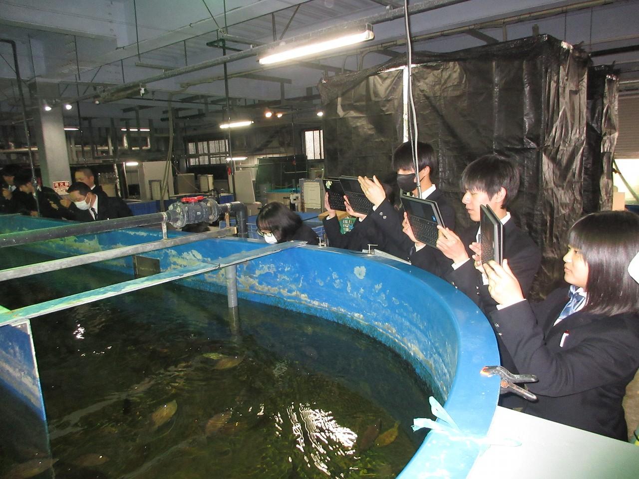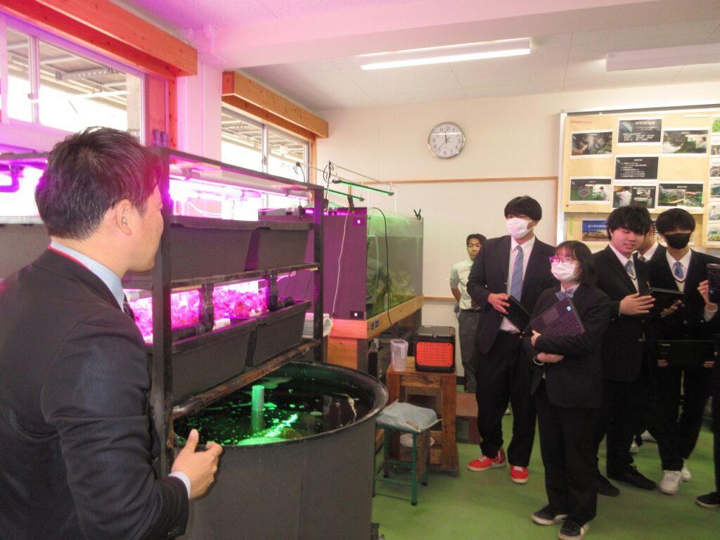 岡山理科大学では、山本俊政准教授より陸上養殖の研究や好適環境水について専門的な説明を受け、研究設備も見せていただきました。いずれの見学先でも、本校では見ることのできない大型水槽や、植物栽培と一体化したシステムに、生徒たちは強い関心を示していました。今回の研修で得た学びを、今後の実習や探究活動に生かしていきます。