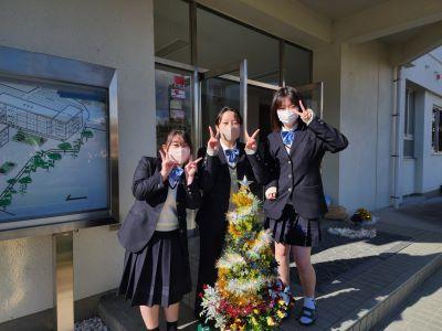今年もあとわずかとなりました。来週はクリスマスです。食農生産科では栽培している植物を使って今年も装飾してクリスマスツリーを玄関前に設置しました。ツリーがあるだけで玄関周辺の雰囲気が一気にクリスマスっぽくなりました!玄関前ではビオラ(80円)やハボタン(100円)、寄せ植え(800円〜)も販売しています。お近くに立ち寄られた際はぜひお買い求め下さい!