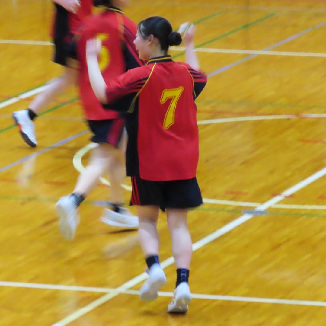 序盤は硬さが見られましたが、徐々に硬さも取れ、落ち着いて点数を重ねることができ、前半リードで折り返しました。後半は相手の力強い攻めに押し込まれる場面もあり、自分たちの思うような展開に持ち込めませんでしたが、28−18(前半13−6)で勝利することができました。