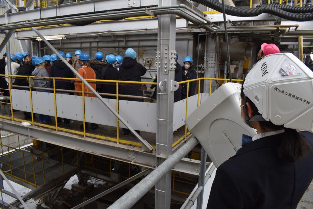 2月10日(火)、岡山県立勝山高等学校蒜山校地の1年生22名が真庭バイオマスツアーに訪れ、本校MBM(真庭バイオマスマイスター)認定の生徒がガイドを行いました。本校生徒は真庭バイオマス発電所から合流し、真庭バイオマス発電所と銘建工業CLT工場の見学をガイドしました。その後、昼食会場でもある真庭あぐりガーデンまでガイドをさせて頂きました。真庭高校生にとって、他校の生徒へガイドさせて頂く経験を重ね、今回もさらにステップアップする貴重な学びを得ることができました。ありがとうございました。