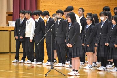 対面式では新入生と在校生、それぞれ代表の生徒があいさつをしました。