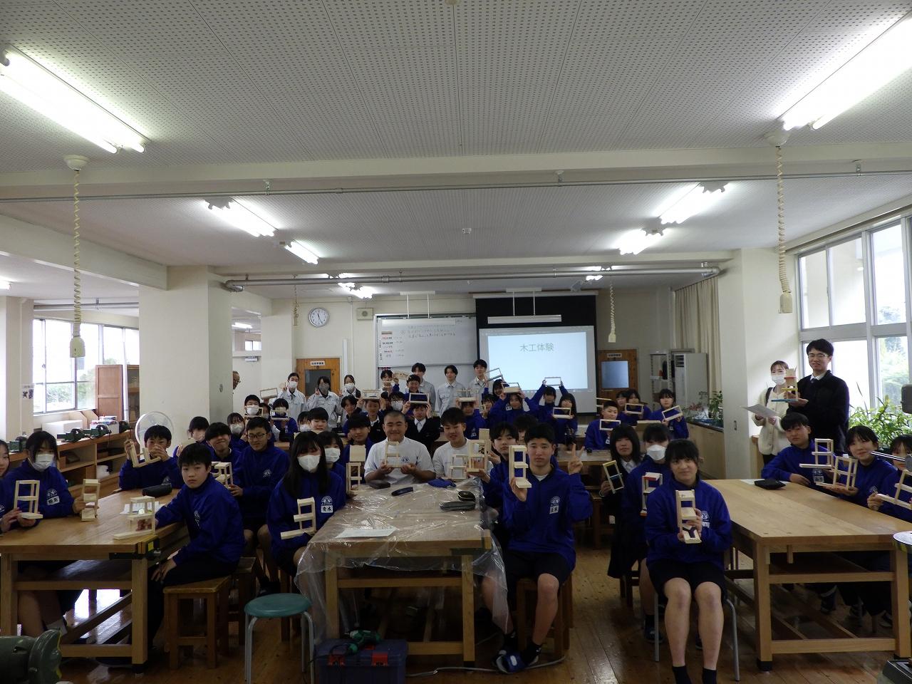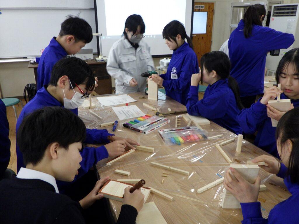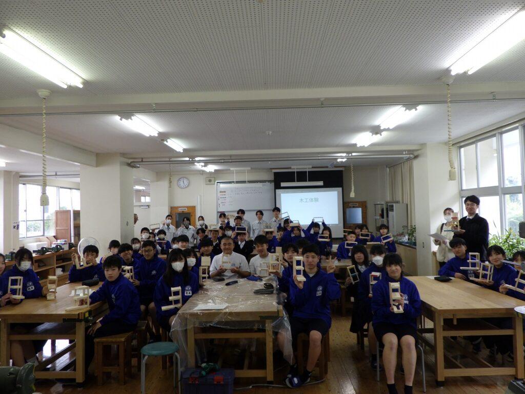 中学生の皆さんも初めて使う工具にドキドキしながら作成していましたが、本校生徒たちは楽しそうにしている中学生の姿を見て、準備から実施までの達成感を味わい、充実した出前授業になりました。