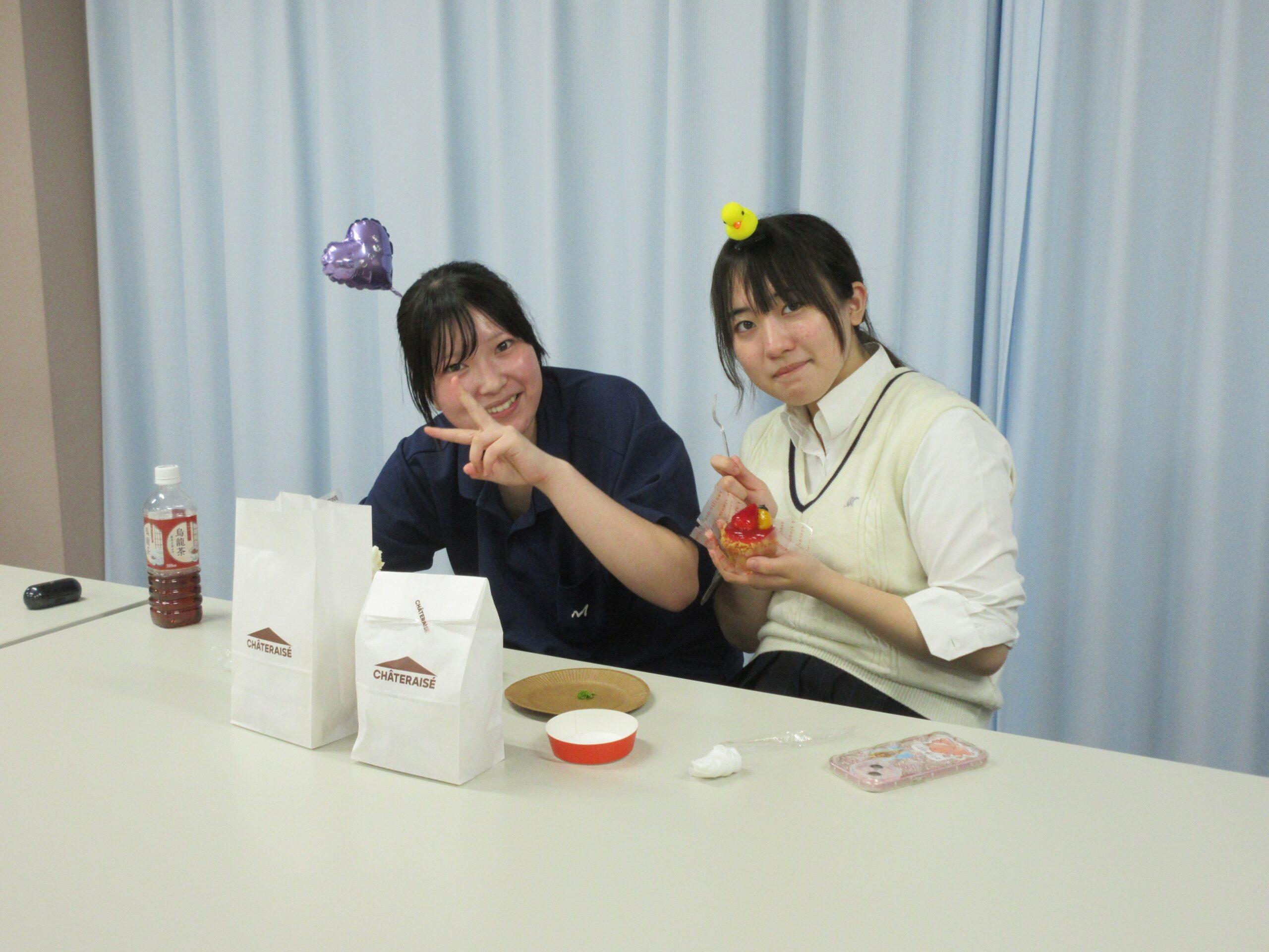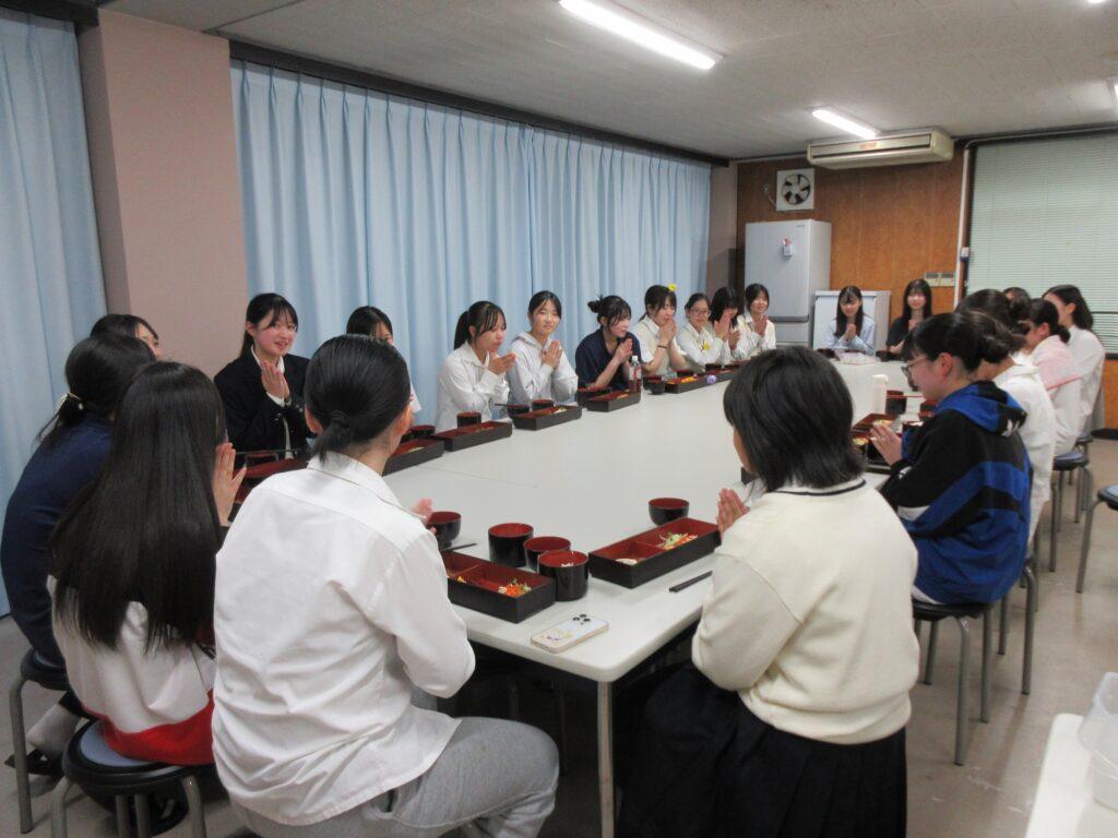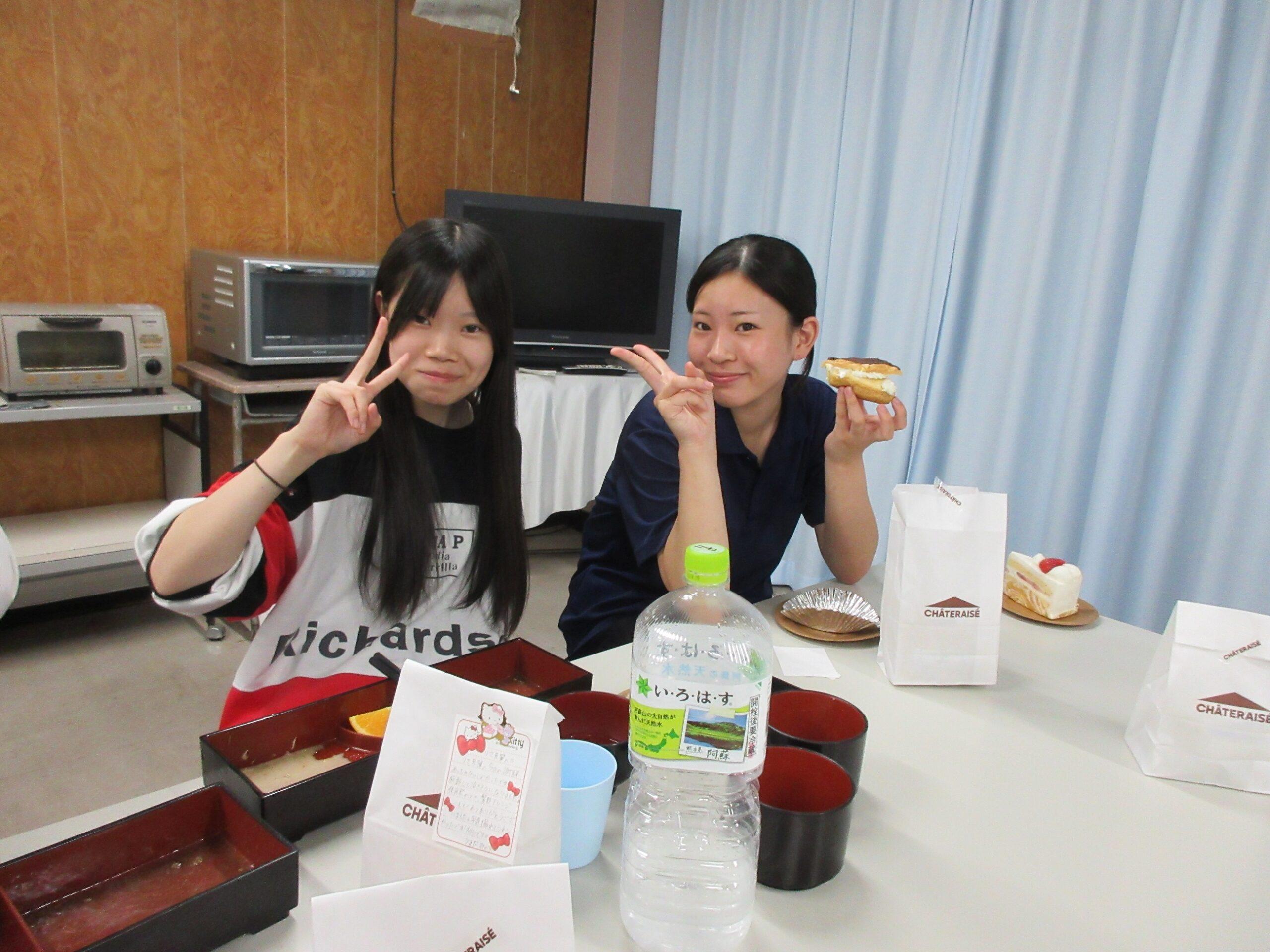10月21日(火)、白梅寮の看護科2年生全員が宣誓式を無事終えたことをお祝いして、寮生全員で、ささやかなお祝いパーティーを行いました。この日の夕食はお祝いメニューのステーキ!2年生にメッセージカードつきのプレゼントを送り、一人ずつ挨拶をして実習に向けての決意を語った後、みんなでケーキをおいしくいただきました。和やかな楽しいひとときを過ごしました。