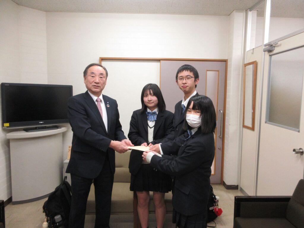 三船会長から感謝の言葉とお礼状をいただき、生徒たちは感謝されることに対する喜びを感じると同時に、地域貢献の1つの形を体験することができました。