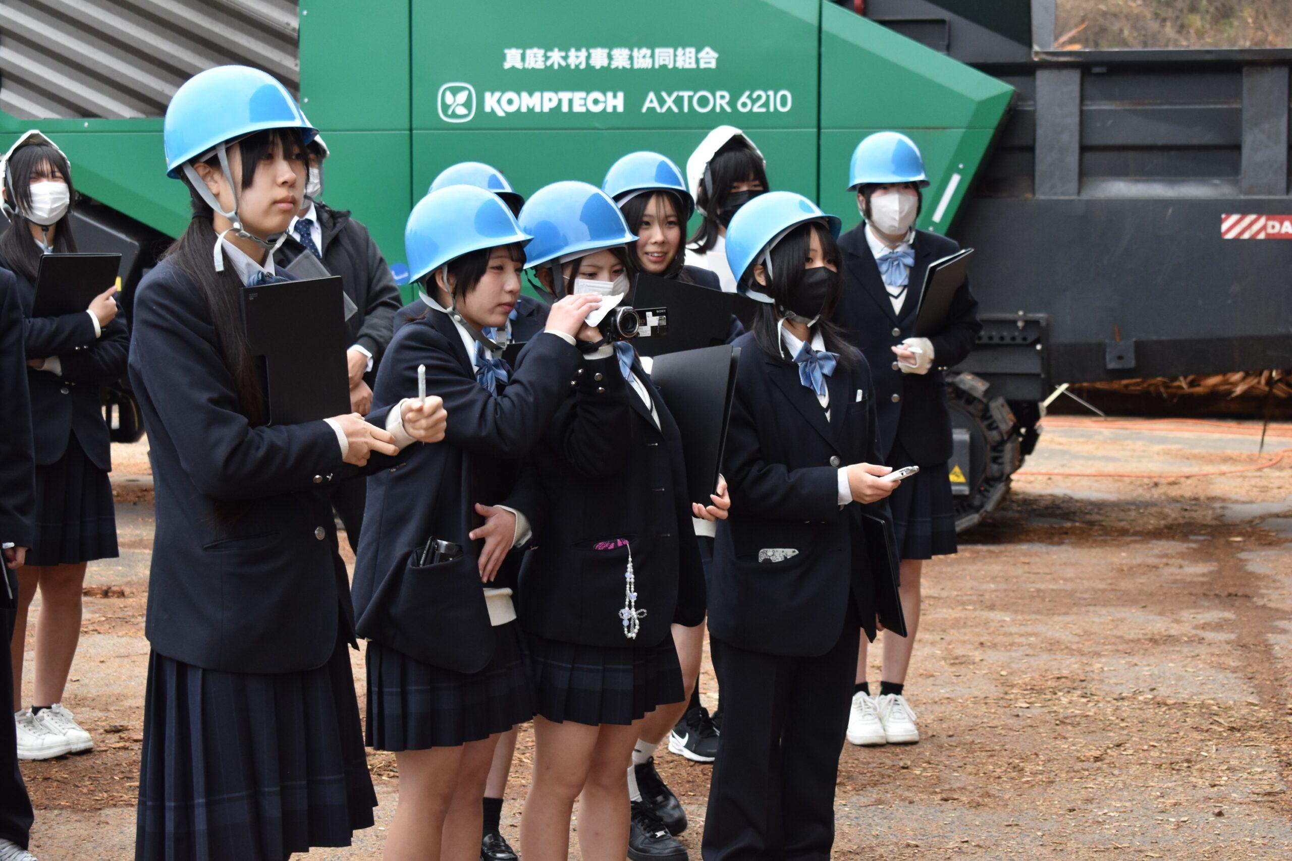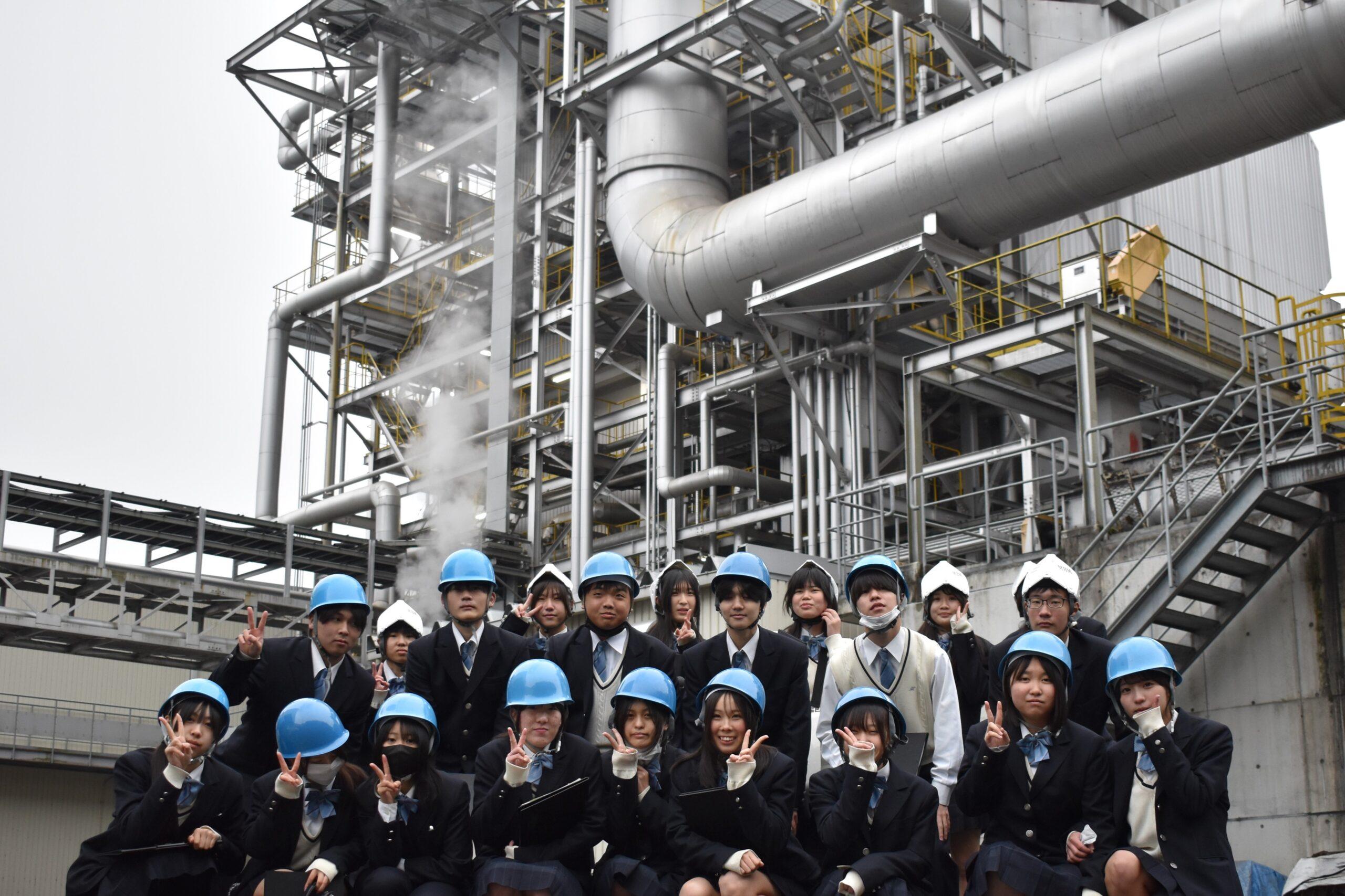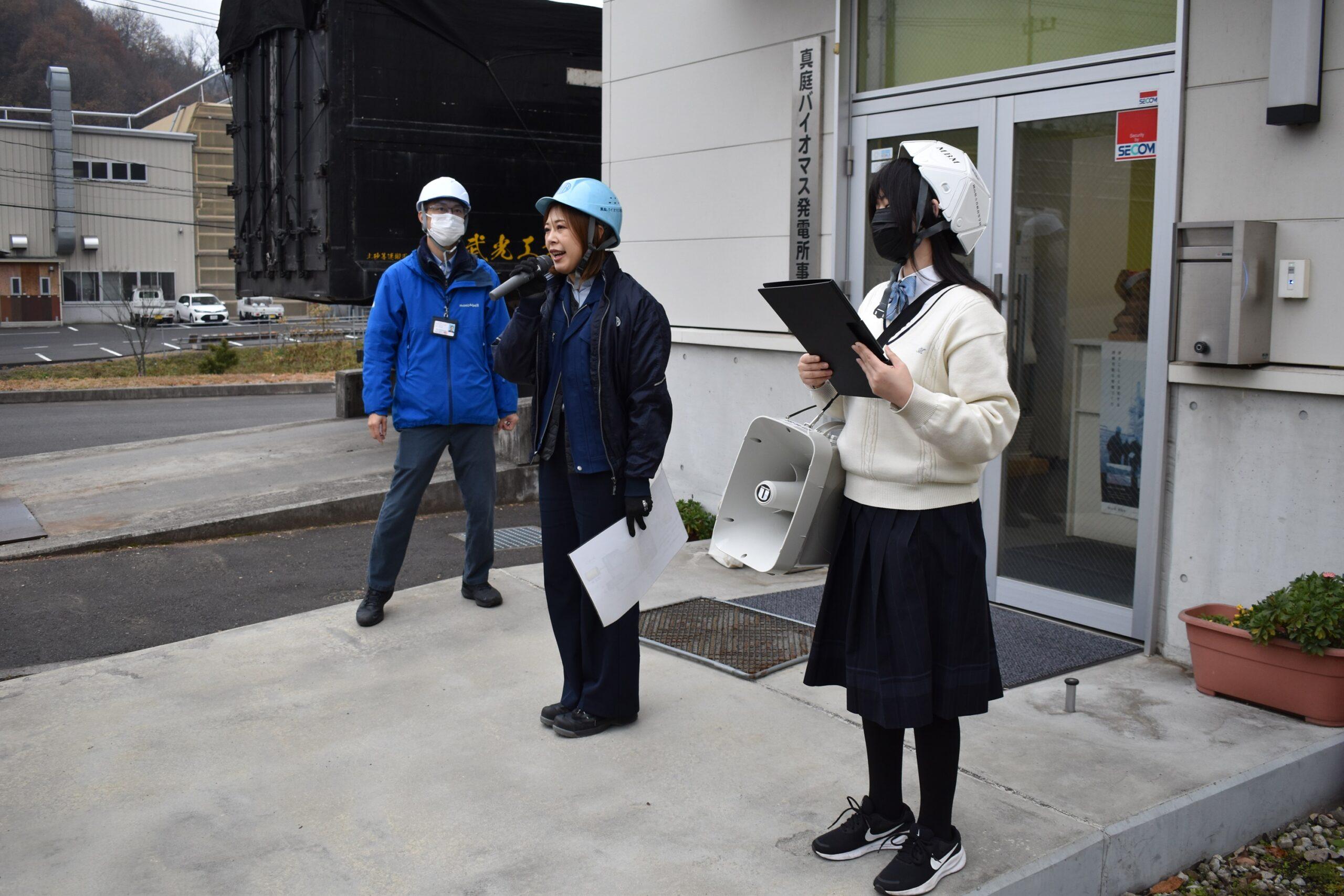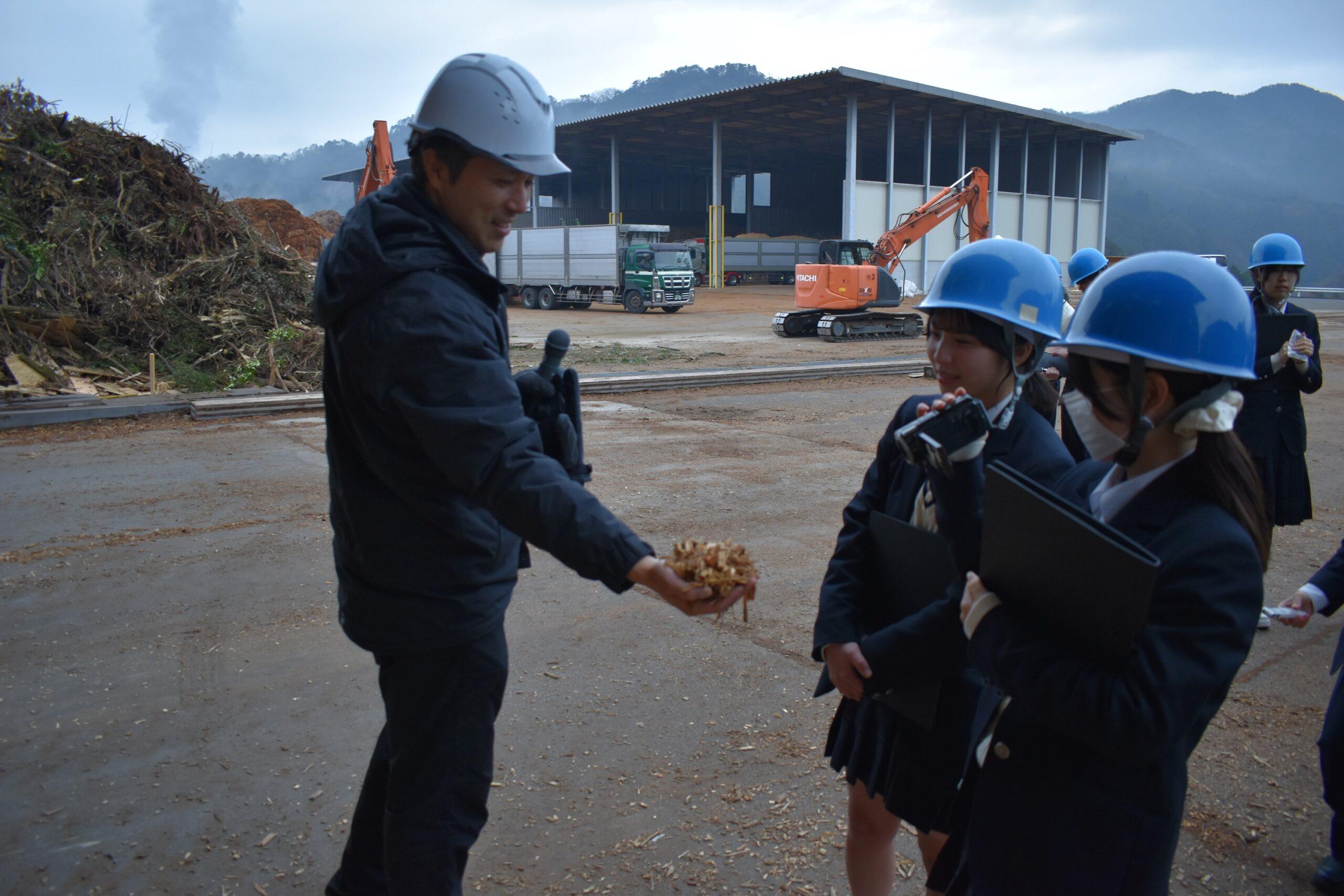 経営ビジネス科では、1年生から3年生にかけてバイオマスツアーガイド養成講座を実施しています。12月17日(水)に2年生のバイオマスツアーを実施しました。このツアーで真庭バイオマス集積基地第二工場、真庭バイオマス発電所を見学し、真庭観光局スタッフの方の動きや話す内容といったガイド技術を学びました。今回のツアーで得た学びをもとに、バイオマスツアーのガイドを実践していきます。