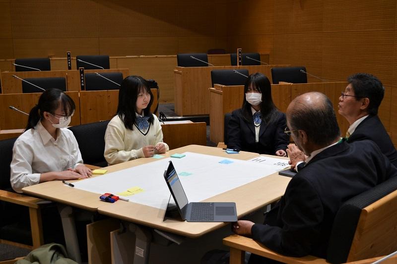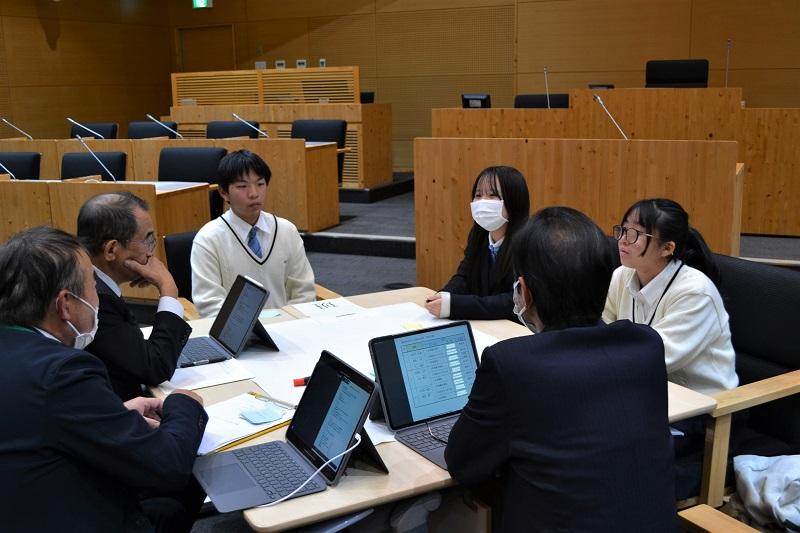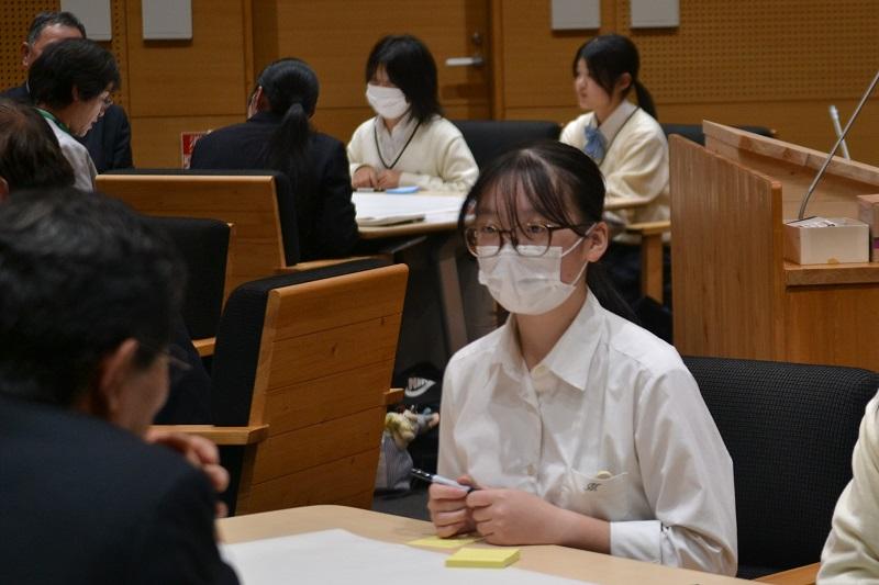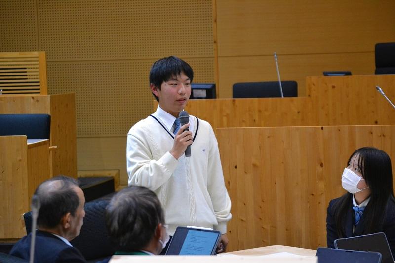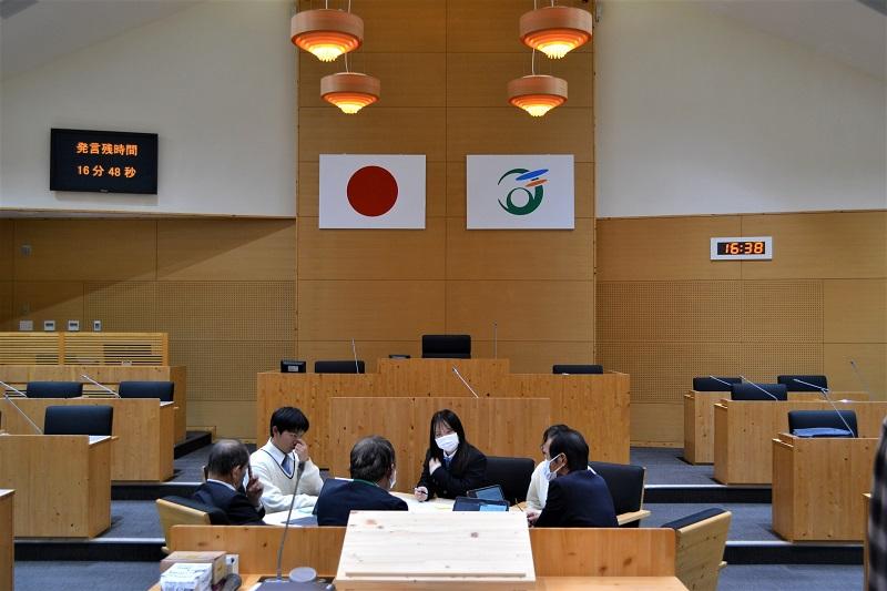 初めて入る議場の雰囲気に最初は緊張した面持ちでしたが、市議の皆さんに優しく接していただき、自分の意見をしっかりと発言することができたようです。