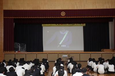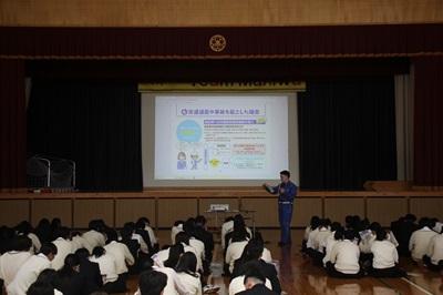 4/21(火)本校体育館で、真庭警察署交通課から横山勇吹様を講師としてお招きし、交通講話が行われました。今年度から道路交通法が改正され、新たに自転車運転に対して青切符が適用されるようになりました。本日の講話は、改正された点を中心に行われました。