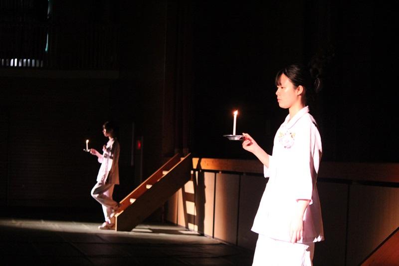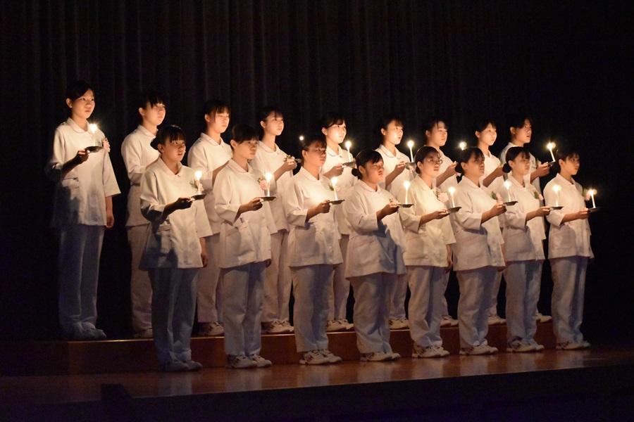 ステージ上ではろうそくの灯火の中、ナイチンゲール誓詞を立派に奏上し、看護の道を歩むことの決意がその表情に表れていました。