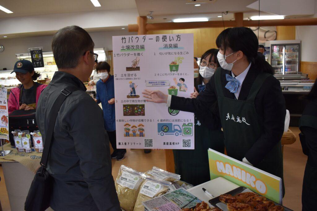 さらに、昨年度から商品化を目指して活動してきた土壌改良用の「竹パウダー」の試験販売も行いました。