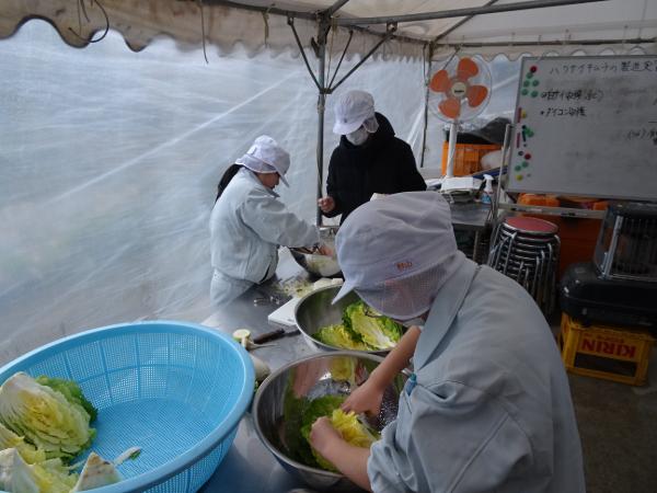 4. 食農生産科1年 育てた白菜と大根でキムチ作り(その1)