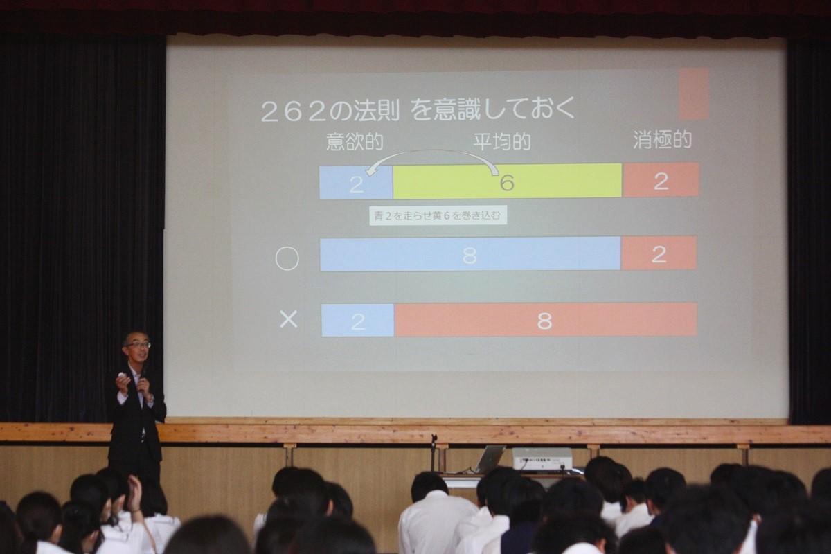 9月2日(月)に始業式がありました。校長先生から、『チーム真庭』として学校全体がひとつになるために「262の法則」をもとに自身がどういう動きをすべきかお話がありました。2学期は文化祭と体育祭があります。一丸となって真庭高校を盛り上げていきましょう!