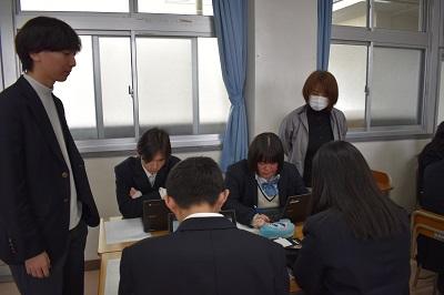 1月13日(火)の5・6限に、MoonShot 第13・14回が行われました。今回が本年度の最終活動となりました。次週の学年発表会に向けて、各班でプレゼン資料を作成しながら、生徒たちは今年度の成果を話し合い、内容をまとめていました。また、MoonShot今井さんからのアドバイスを受け、プレゼン資料を完成させていきました。来週の学年発表会が楽しみです。
